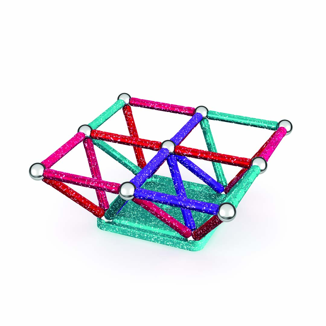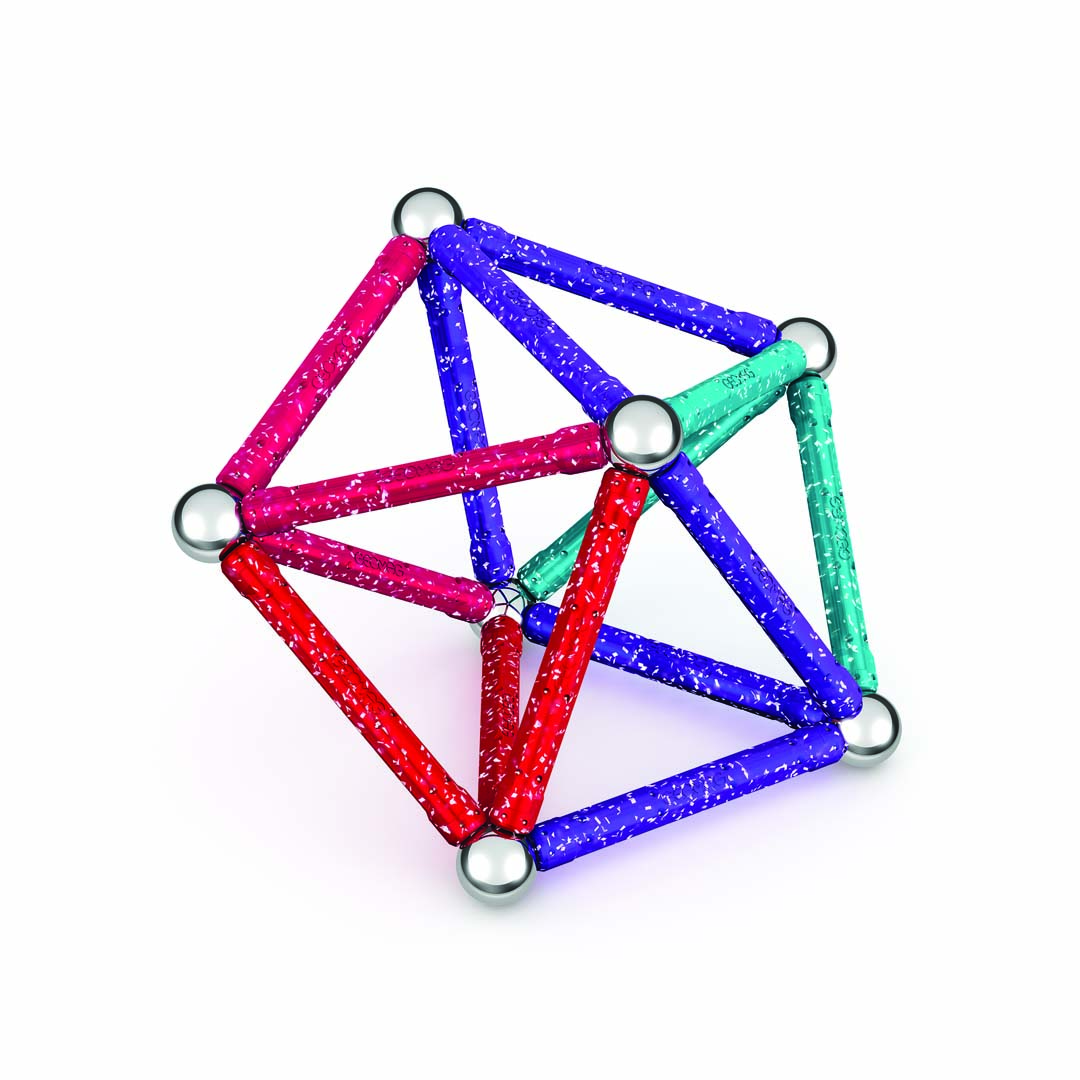 - Bauteile: Magnetischen Stäbe, Stahlkugeln und Tafeln in verschiedenen Formen bilden das magnetische Bausystem, dass Geomag in der ganzen Welt berühmt gemacht hat.