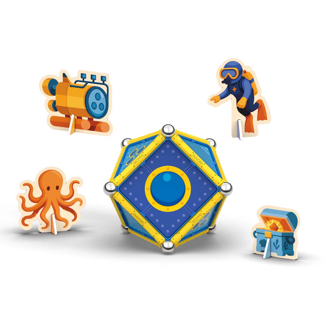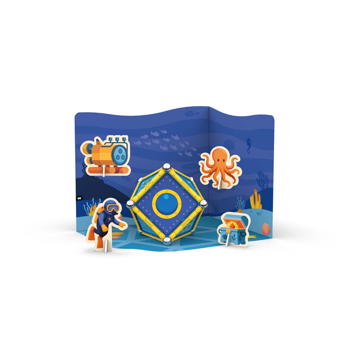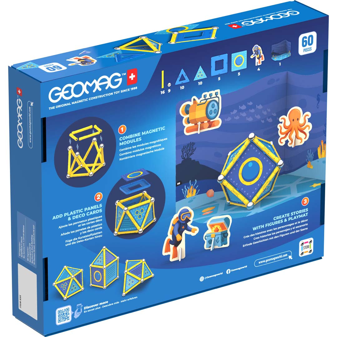 Mit dem Geomag Magnetic Stories – Ocean Discovery können Kinder ab 5 Jahren spannende Entdeckungen unter Wasser nachspielen. Das 60-teilige Set kombiniert magnetische Bauteile mit fantasievollen Figuren und einer thematisch gestalteten Spielmatte, die zum Erfinden kreativer Geschichten einlädt. Dabei werden Vorstellungskraft, Feinmotorik und logisches Denken gefördert – ein ideales Geschenk für kleine Entdeckerinnen und Entdecker!