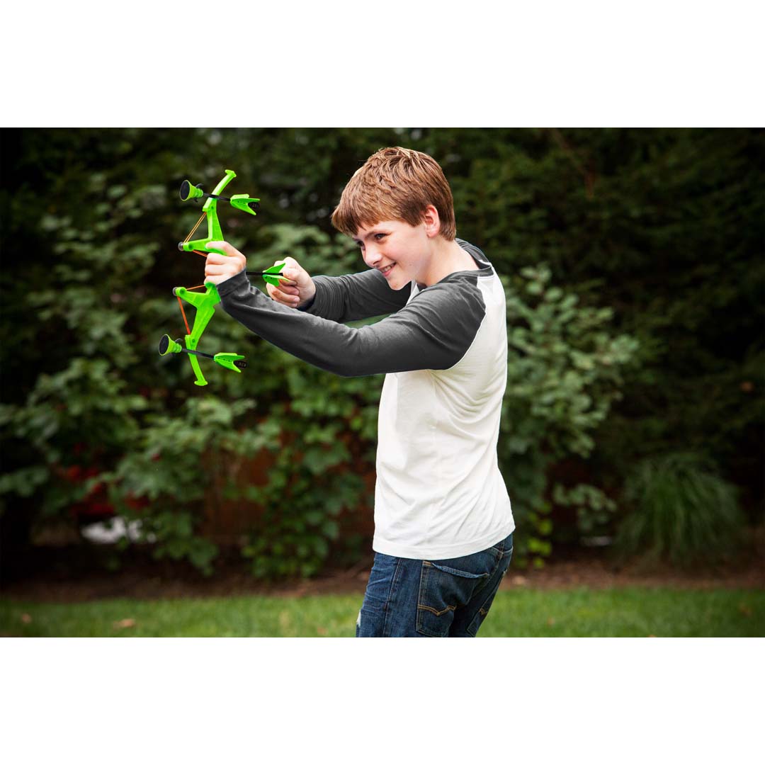 Der originale Bullz-Eye Bow von Zing – Pfeil einhaken, zielen und abschießen! Dank des einzigartigen Abschussmechanismus trifft dieser Bogen besonders präzise, während die weichen und sicheren Klett-Pfeile über 10 Meter weit fliegen. Sammle Punkte, indem du die Klett-Pfeile auf die beiliegende Zielscheibe (Ø 45 cm) schießt – oder baue deine eigenen Ziele und Hindernisse für coole Trickschüsse auf! Die weichen Klettspitzen und Schaumstoff-Flossen machen die Pfeile sicher und möbelfreundlich – ideal auch für den Indoor-Einsatz. Der Bullz-Eye-Bogen ist das perfekte Familienspielzeug für Sommer, Urlaub oder Zuhause!