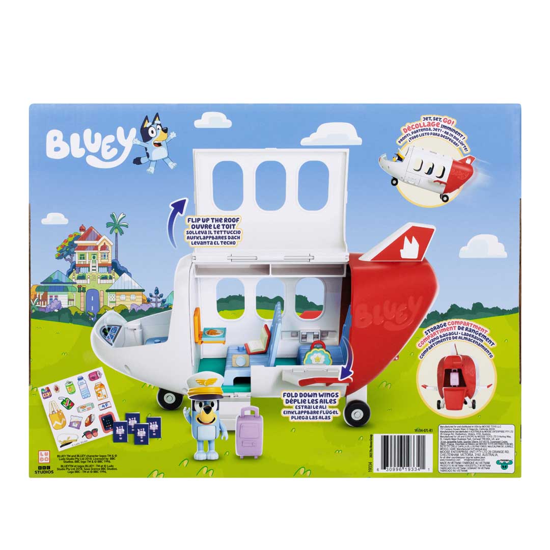 Mit dem Bluey Jet von Moose Toys erleben Kinder spannende Reiseabenteuer mit ihrer Lieblingsserie! Das detailreiche Flugzeug-Spielset lädt dazu ein, gemeinsam mit Bluey und ihrer Familie in die Ferien zu starten und fantasievolle Geschichten rund ums Fliegen, Reisen und Entdecken nachzuspielen.