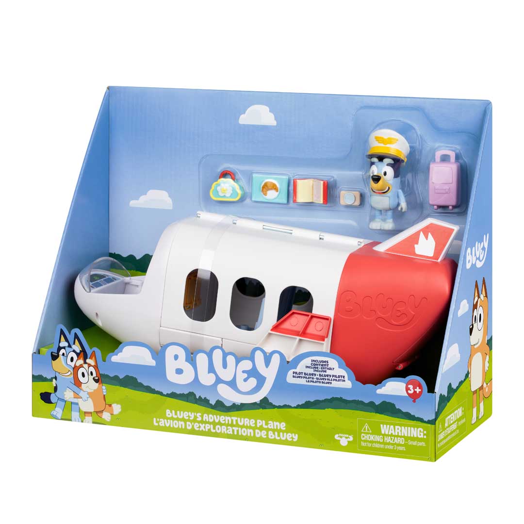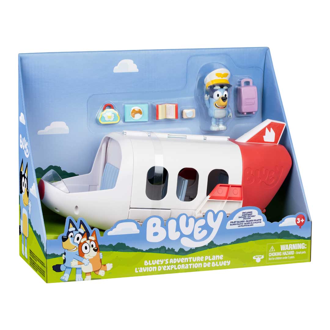 Inhalt: 1 x Flugzeug-Spielset, 1 x Bluey-Figur, 6 x Zubehörteile.