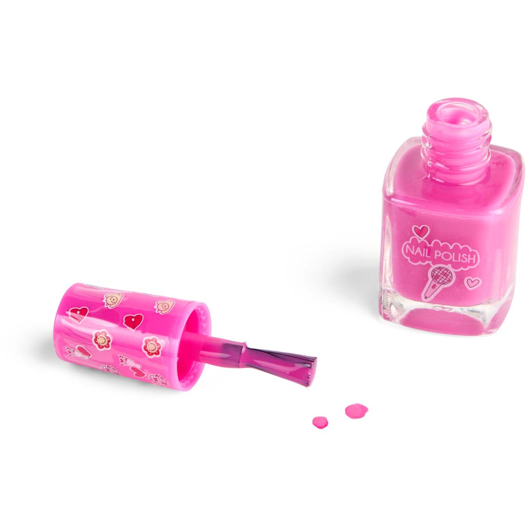 Inhalt: 5 verschiedene Nagellackfarben, 2 Zehenspreizer, 1 Nagelfeile, 1 Rouge, 1 Mascara, Nagelsticker, 1 Lipgloss, 1 Lippenbalsam, 1 Lippenstift, 1 Eye Cream, 1 kleiner Applikator. Der Nagellack kann mit Nagellackentferner entfernt werden.