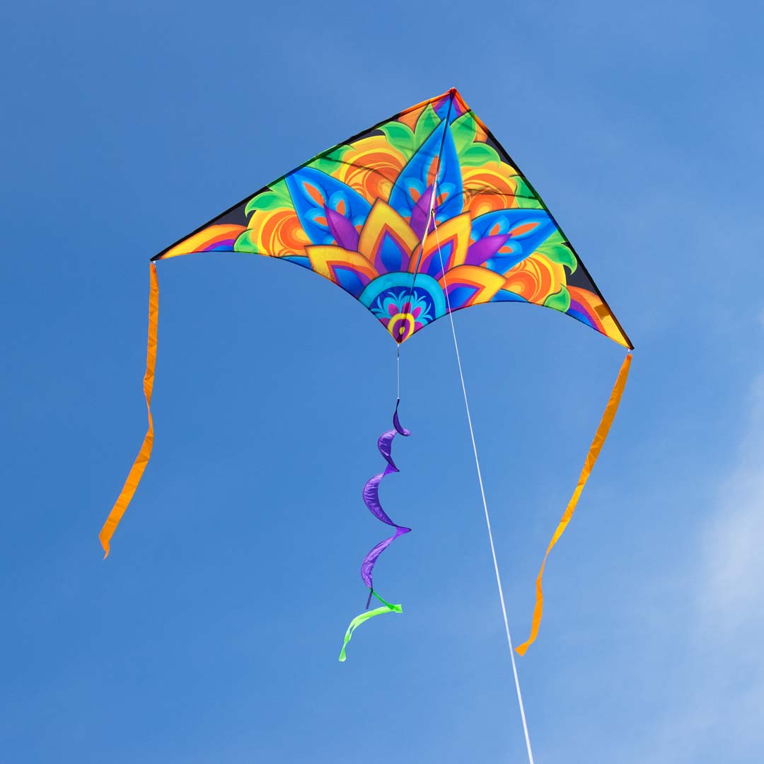 Delta Rainbow Mandala - Kinderdrachen, ab 10 Jahren, 98x210cm, inkl.45kp Polyester Schnüre, 60m