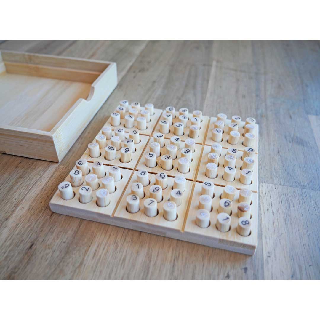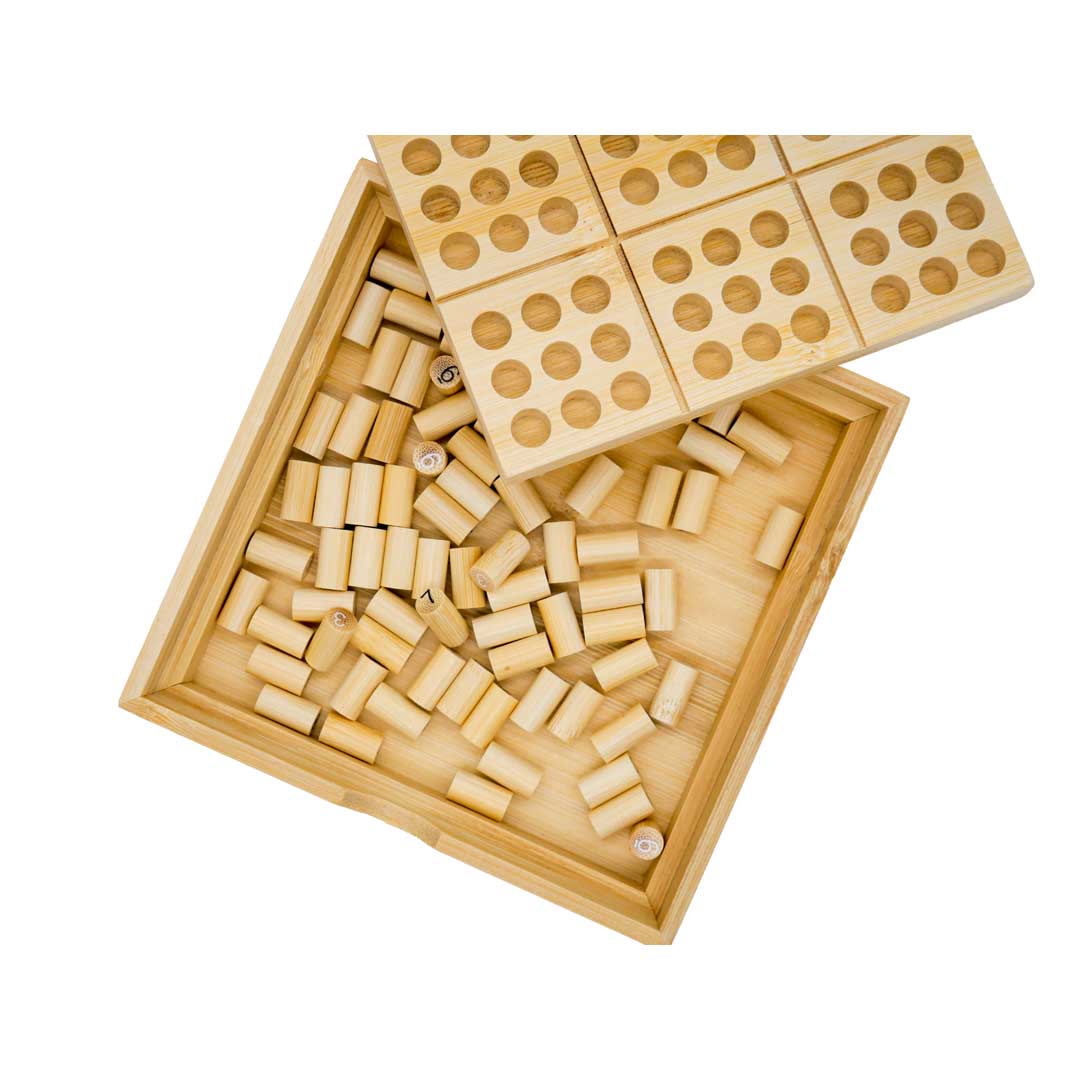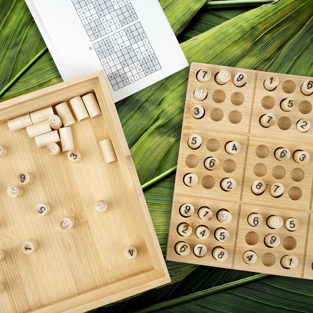 Ein klassisches, logikbasiertes Puzzle-Spiel, vollständig aus Bambus und recycelten Materialien gefertigt. Dieses Set enthält ein Heft mit 30 Sudoku-Rätseln in unterschiedlichen Schwierigkeitsgraden von leicht bis schwer und bietet stundenlangen Rätselspaß. Die Lösungen können mit dem im Anhang enthaltenen Antwortteil überprüft werden.