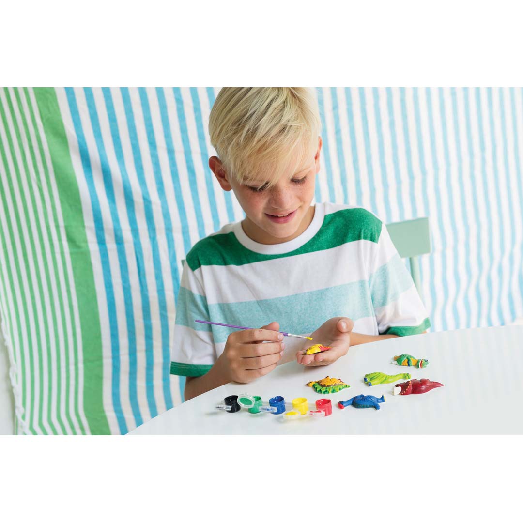 Gieße und bemale deine eigenen Dinosaurier-Magnete und Anstecker, die sogar im Dunkeln leuchten! Mit der beiliegenden Form, Gips, Farben und dem Pinsel erschaffst du Schritt für Schritt fantastische Urzeitwesen, die du an den Kühlschrank hängen oder als Anstecker tragen kannst. Ein tolles Bastelset für kleine Dino-Fans und kreative Entdecker – ideal zum Verschenken oder Sammeln!