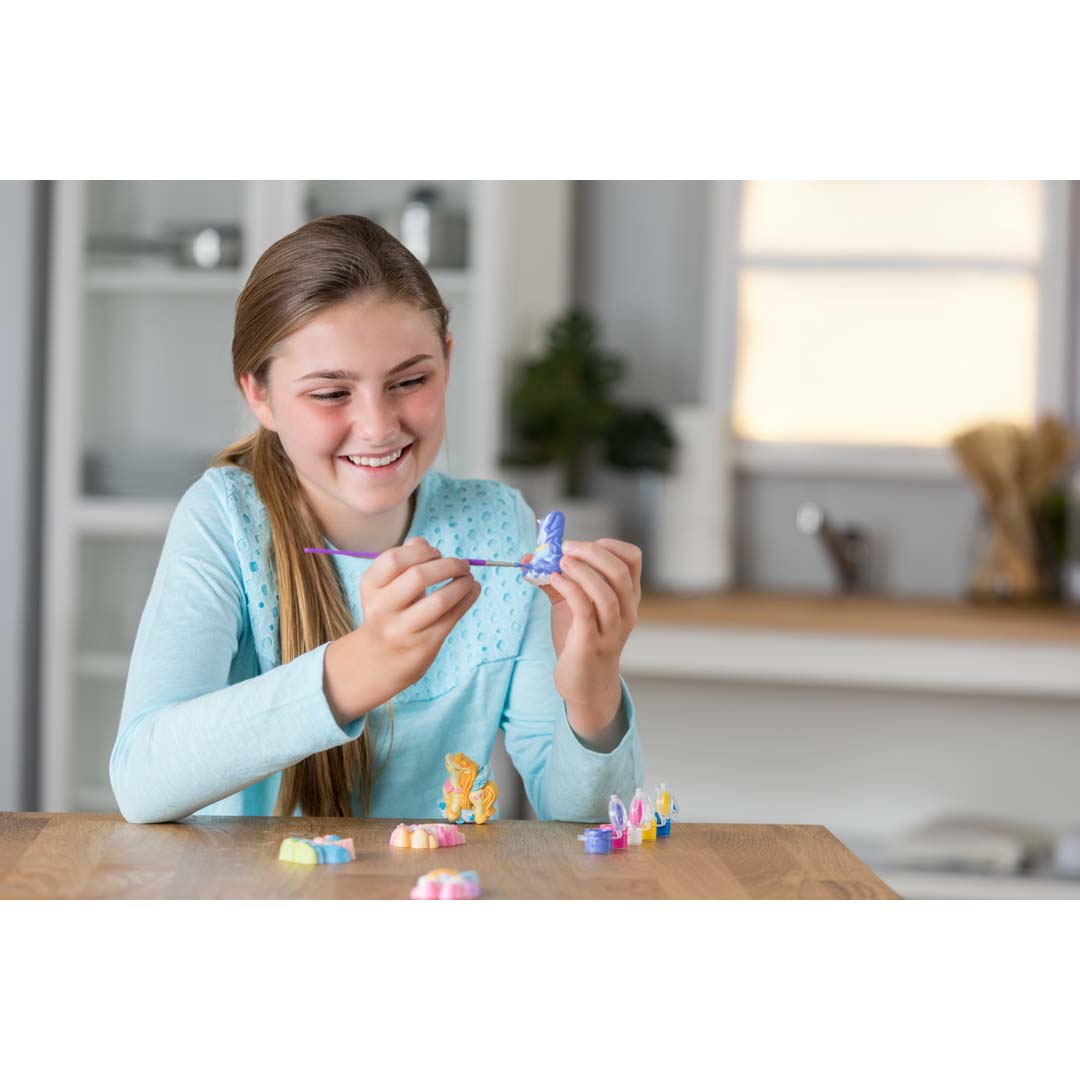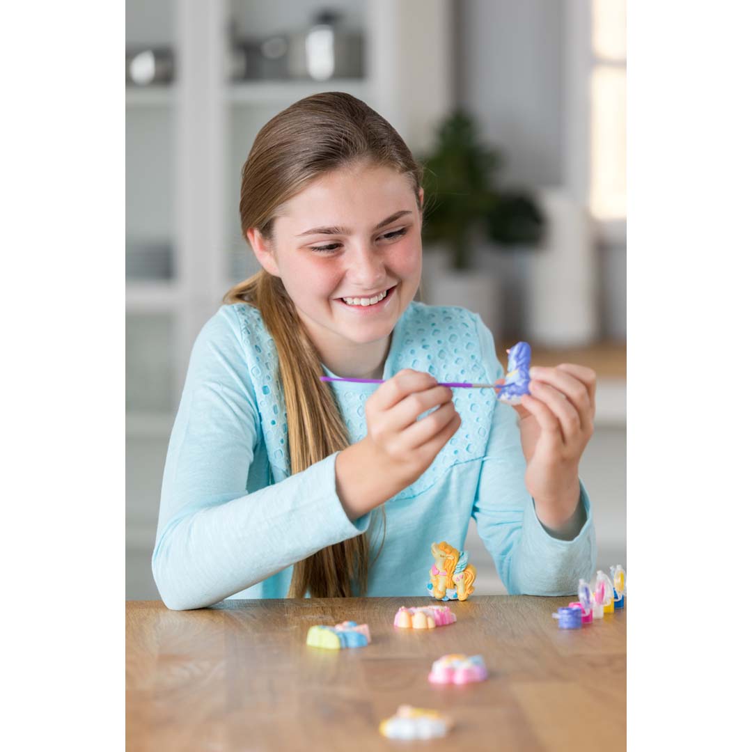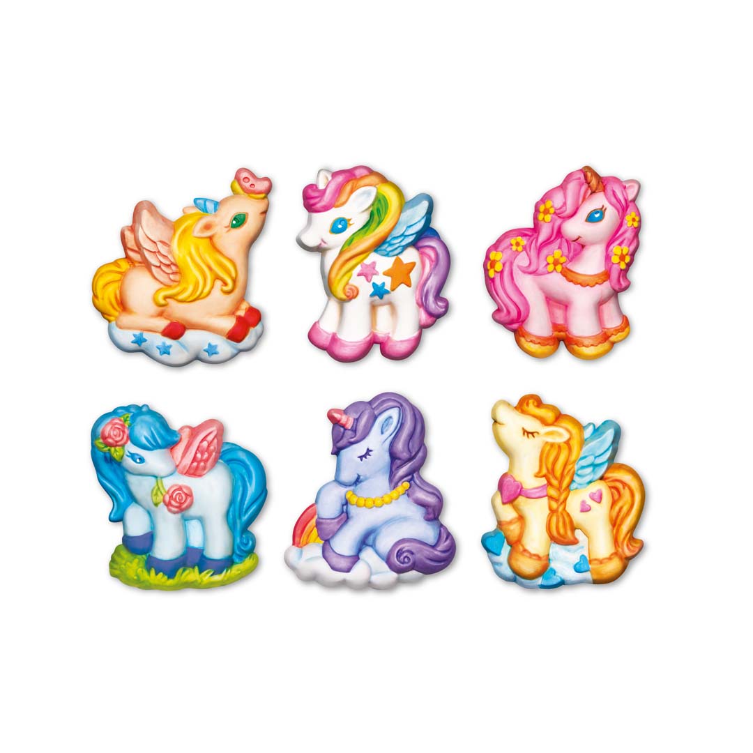 Mit diesem Set entsteht eine funkelnde Einhornwelt voller Magie! Gestalte mit Gips eigene Einhorn-Magnete und -Anstecker – perfekt zum Verschenken oder zum Verschönern des Kühlschranks. Forme sechs Designs, bemale sie in leuchtenden Farben und verleihe ihnen mit Glitzer den letzten magischen Schliff. Eine kreative Bastelidee, die Fantasie und Feinmotorik fördert.