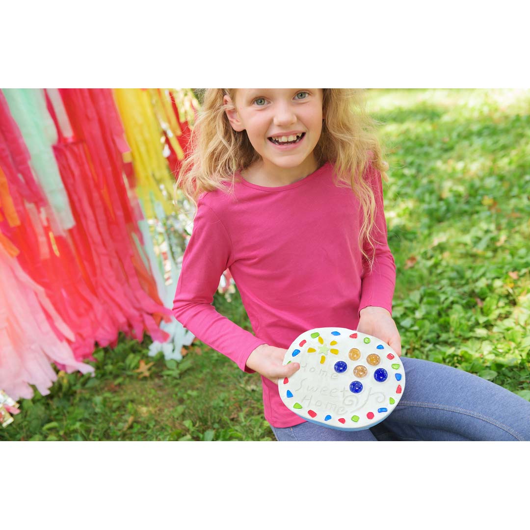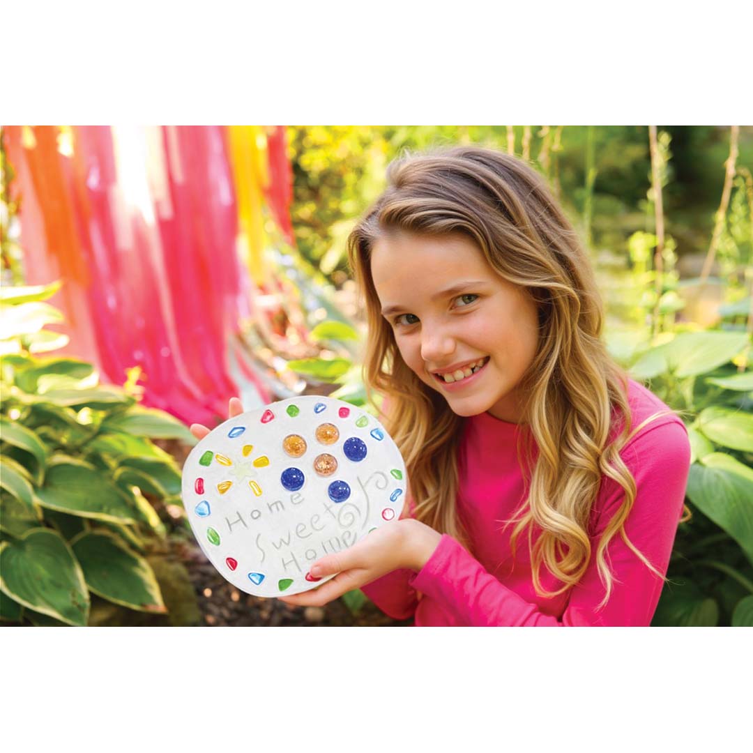 Gestalte deinen eigenen Garten-Trittstein – ganz nach deinem Stil! Forme, dekoriere und verziere ihn mit funkelnden Kristallen und leuchtenden Sternen, die tagsüber glitzern und nachts magisch strahlen. Ein wunderschönes DIY-Projekt, das deinen Garten in ein kreatives Kunstwerk verwandelt. Ein fantasievoller Bastelspaß für Kinder, der Magie und Natur verbindet.