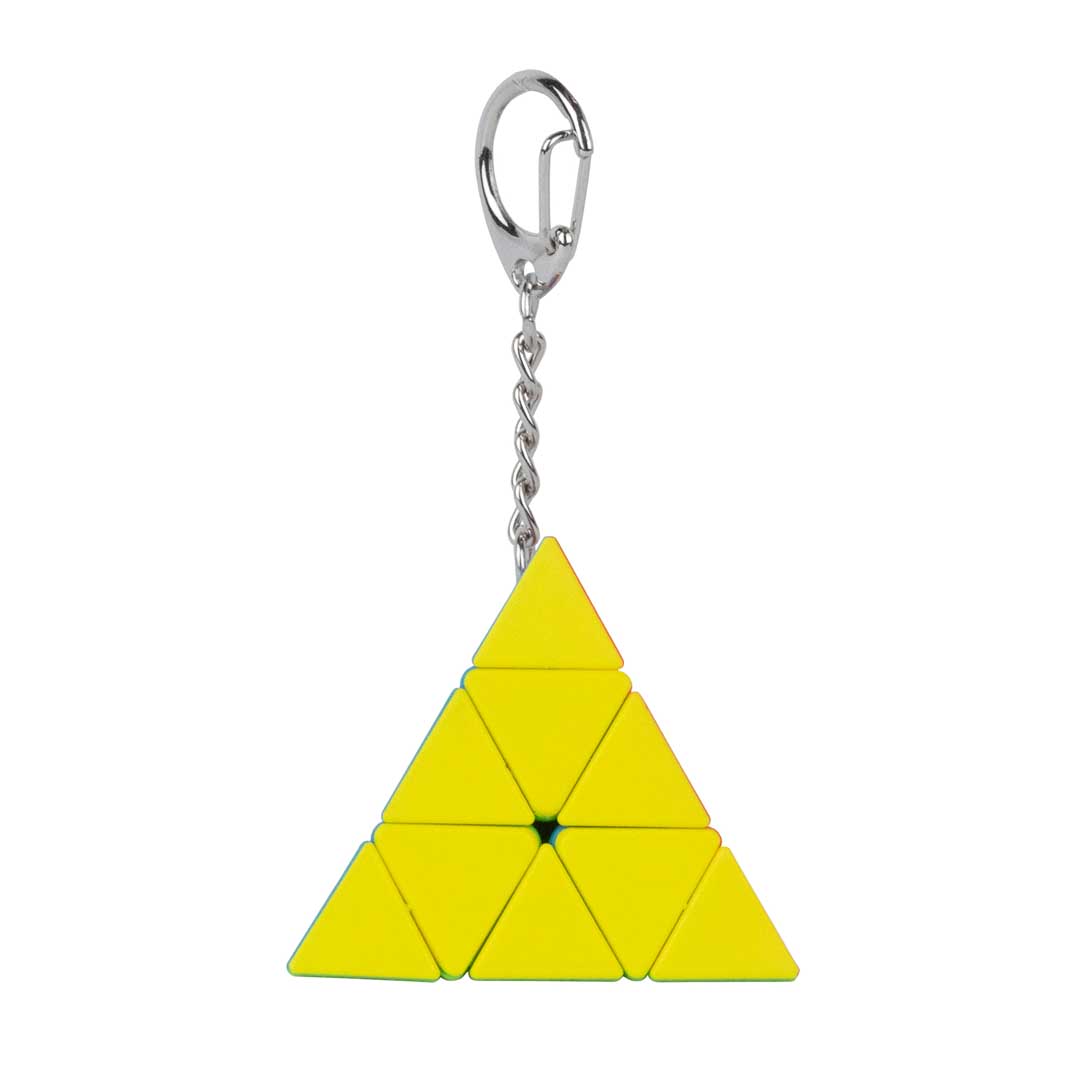 Pyramidenpuzzle mit Schlüsselclip. Markantes, pyramidenförmiges Geduldspiel mit Schlüsselanhänger und angenehm haptischem Design, das sich ideal für Einsteiger und Puzzlefans unterwegs eignet. Befestige es an Rucksack, Schlüsselbund oder Jacke und nutze es als auffälliges, funktionales Accessoire, das gleichzeitig eine kleine Herausforderung bietet.