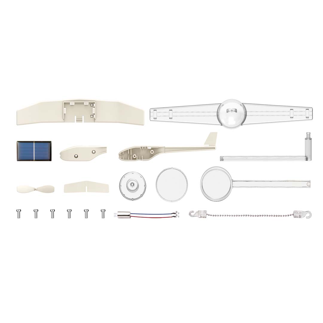 Baue dein eigenes Solarflugzeug und schau zu, wie es sich mit reiner Sonnenenergie bewegt! Trifft Licht auf das Solarpanel, rotiert der Propeller – ganz ohne Batterien und ohne Umweltbelastung. Das Modell ist leicht zusammenzubauen und zeigt spielerisch, wie Solarenergie in Bewegung umgewandelt wird. Ein spannendes Set für junge Forscher, das Wissenschaft, Technik und Spaß verbindet. Einfach bauen – nur Sonnenkraft!
