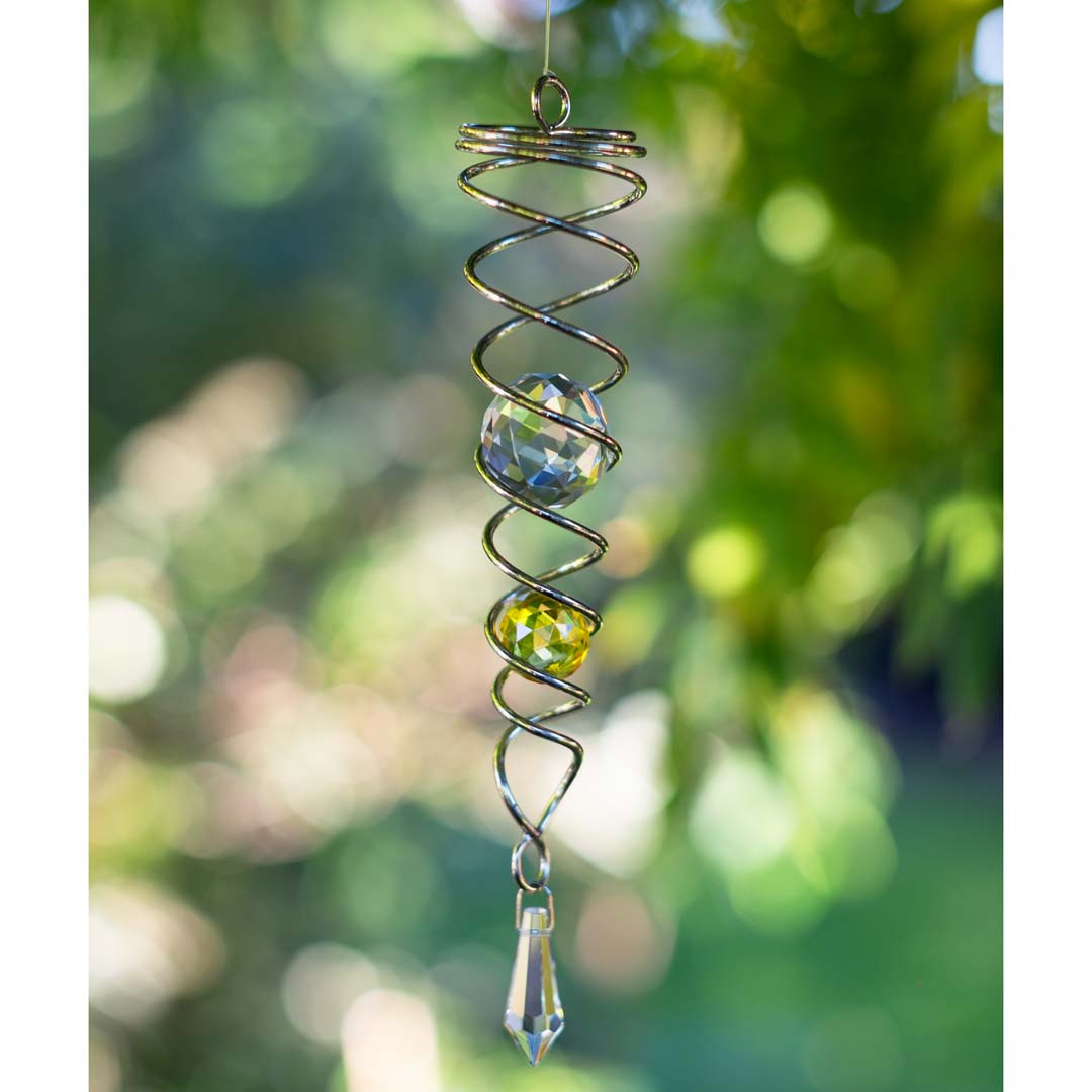 Crystal Twist ist ein dekorativer Blickfang für Haus und Garten. Eine funkelnde Glaskugel ruht in einer elegant geschwungenen Edelstahlspirale. Dreht sich die Spirale im Wind, entsteht ein faszinierender, optischer Effekt – als würde die Glaskugel in der Luft schweben. Inklusive Nylonschnur und Edelstahlhaken. Auch perfekt als Zubehör für unsere Kinetic Art Hänge-Windspiele geeignet.