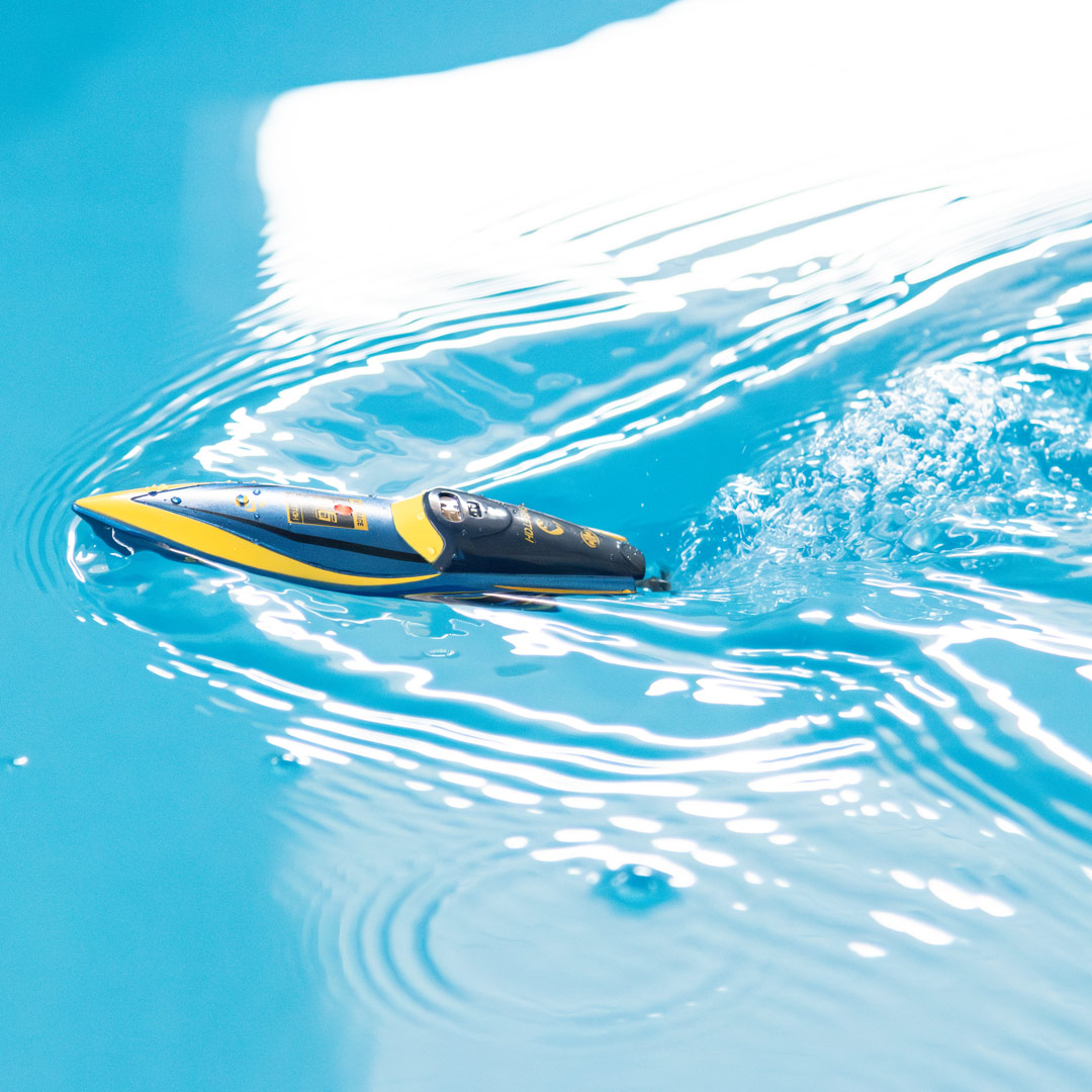 Ob in der Badewanne oder im Pool, dieses kleine ferngesteuerte Stuntboot macht jede Wasseroberfläche zu einem aufregenden Spielplatz. Dabei dreht es sich nach links oder rechts um seine Längsachse. Wenn es nicht in Gebrauch ist, passen das Boot und die Fernbedienung in eine coole Getränkedose und lassen sich so leicht verstauen und transportieren.