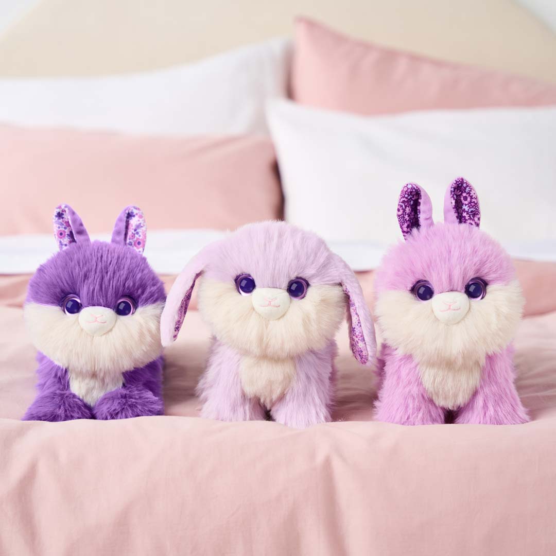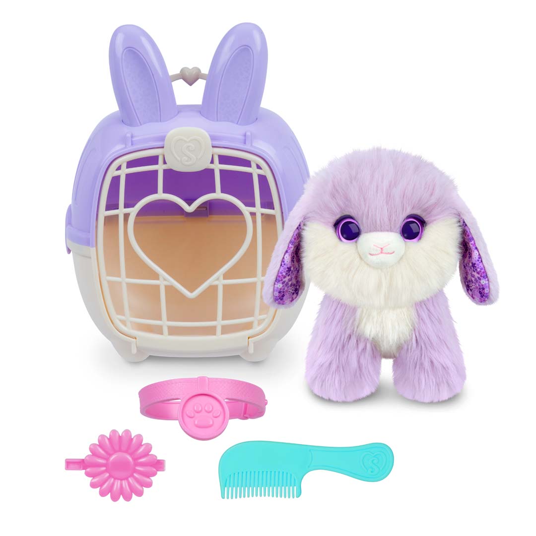 - Inhalt: 1 x Häschen-Plüschtier (1 von 3 verschiedenen), 1 x Halsband mit Namensanhänger, 1 x Kamm, 1 x Clip, 1 x Adoptionszertifikat, 1 x Deluxe-Tiertragekorb, 1 x Anleitung
