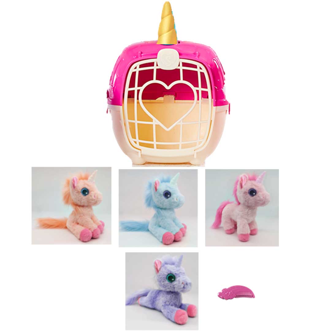 - Die Unicorn Scruff-a-Luvs werden mit einer Einhorn-Transportbox mit goldenem Horn geliefert. Setze dein magisches Haustier hinein und nimm es überall mit hin!