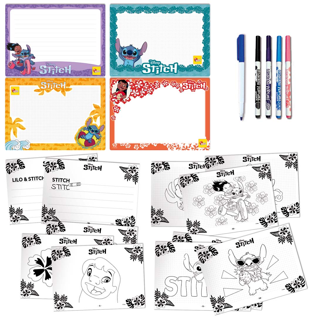 Male und zeichne deine Lieblingsfiguren – mit dem fantastischen Kreativ-Set von Stitch! Mit Stitch’s Zeichenschule wird das Zeichnen ganz einfach: Das beiliegende Arbeitsheft enthält viele Motive mit ansteigendem Schwierigkeitsgrad – von ersten Schwungübungen bis hin zu detailreicheren Bildern, die du mit den duftenden Filzstiften aus dem Set ausmalen kannst. Dank der 4 Schreib- und Löschtafeln kannst du deine Zeichnungen immer wieder ausradieren und neu beginnen – so oft du willst!