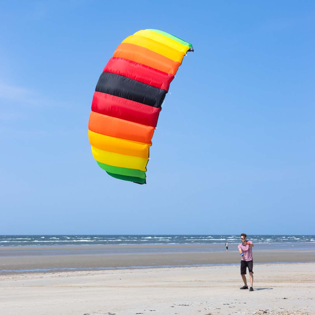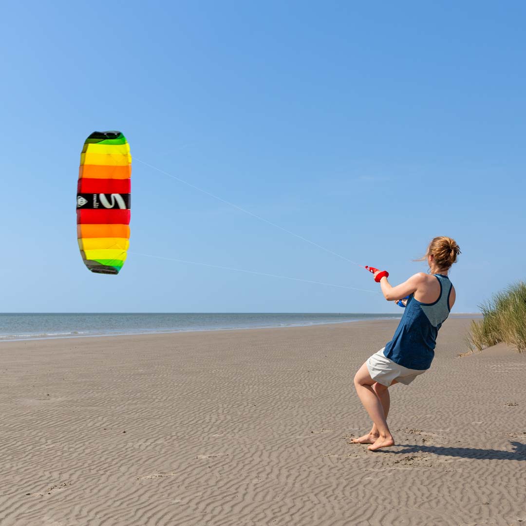 Mit an den Schleppkanten angenähten Schlaufen und den neuen Bremsleinen-Sets (erhältlich als Zubehör) können die größeren Symphony Pros (2.2 + 2.5) kinderleicht zum Vierleiner umgebaut werden – für aktives Bremsen und noch mehr Action. Das folgende Zubehör empfehlen wir dafür: