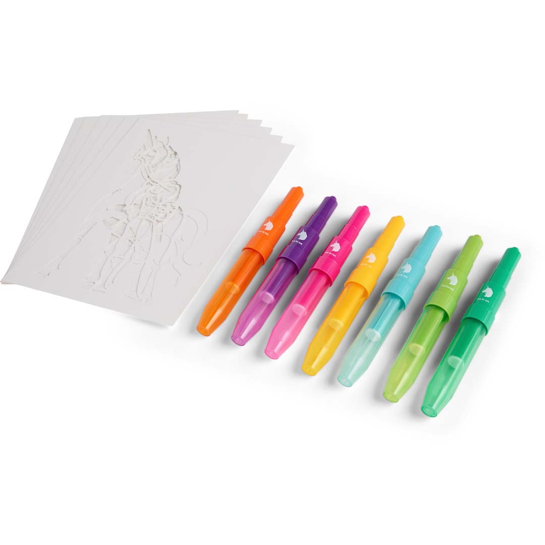 Mit diesem Sprühstifte-Set der Unicorn Academy wird jedes Kind zum Künstler seiner eigenen Einhornwelt. Kinder können eine der sieben leuchtenden Farben wählen und ihre ganz eigenen Einhorn-Abenteuer sprayen! Durch das Pusten in die Stifte und die Nutzung der enthaltenen sechs Schablonen entsteht eine magische Farbwirkung direkt auf dem Papier. Die Farben können kombiniert werden, um neue Farbtöne zu kreieren. Das Set fördert die Kreativität und Feinmotorik von Kindern.