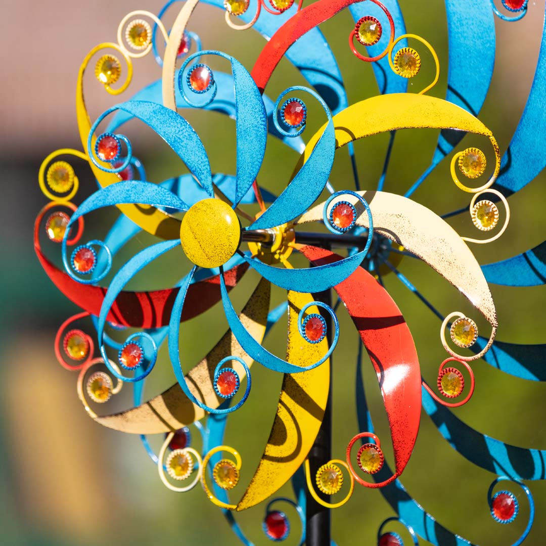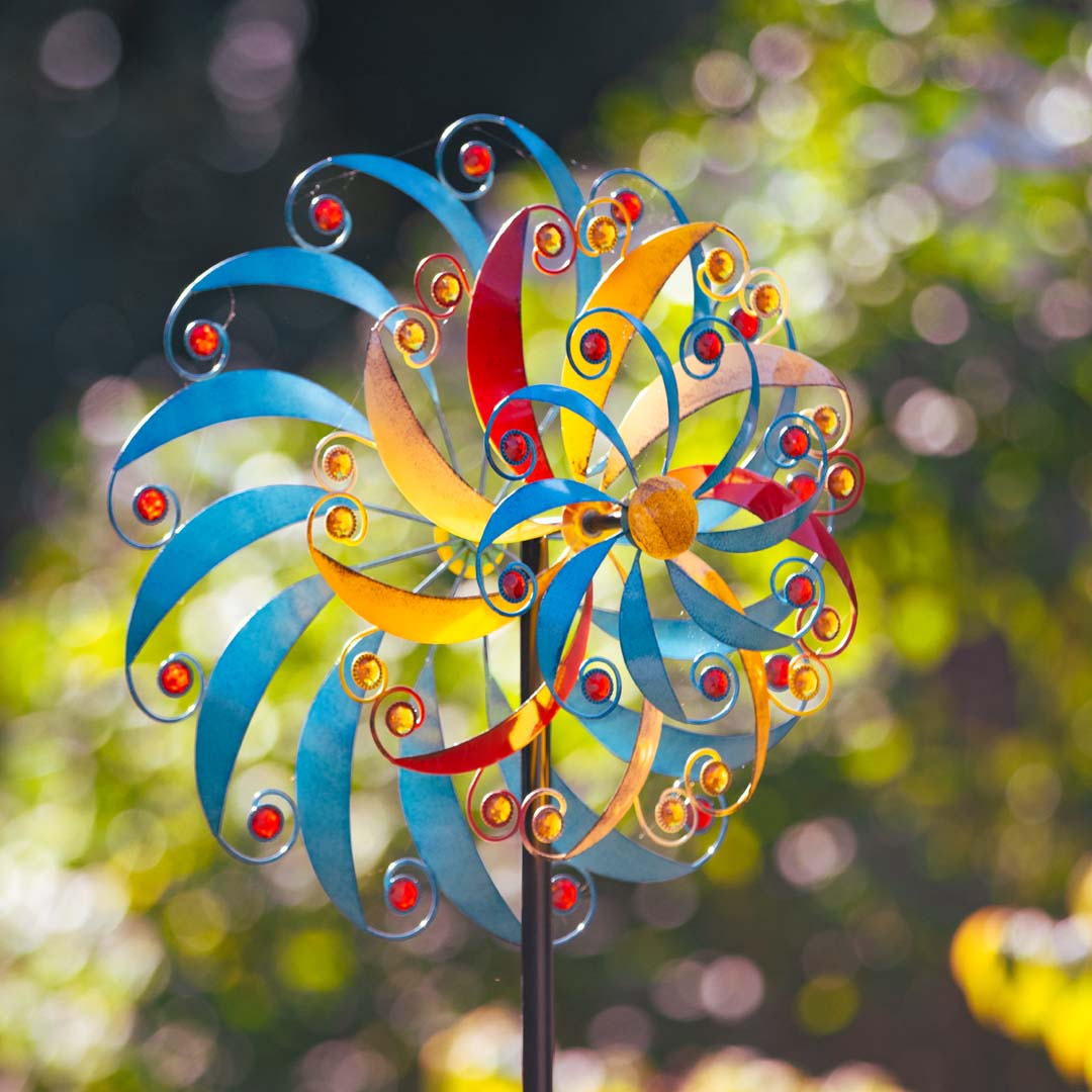 Enjoy the kinetic movement of our metal wind spinners which combine modern functionality with graceful elegance. Featuring a solid metallic construction with dual motion, these durable wind spinners are provided with maintenance free sealed bearings and built to withstand all weather conditions. Solid ground stakes at the base ensure our metal wind spinners are firmly planted for windy days. Easy to assemble, these mesmerizing metal wind spinners are a wonderful addition to any garden.