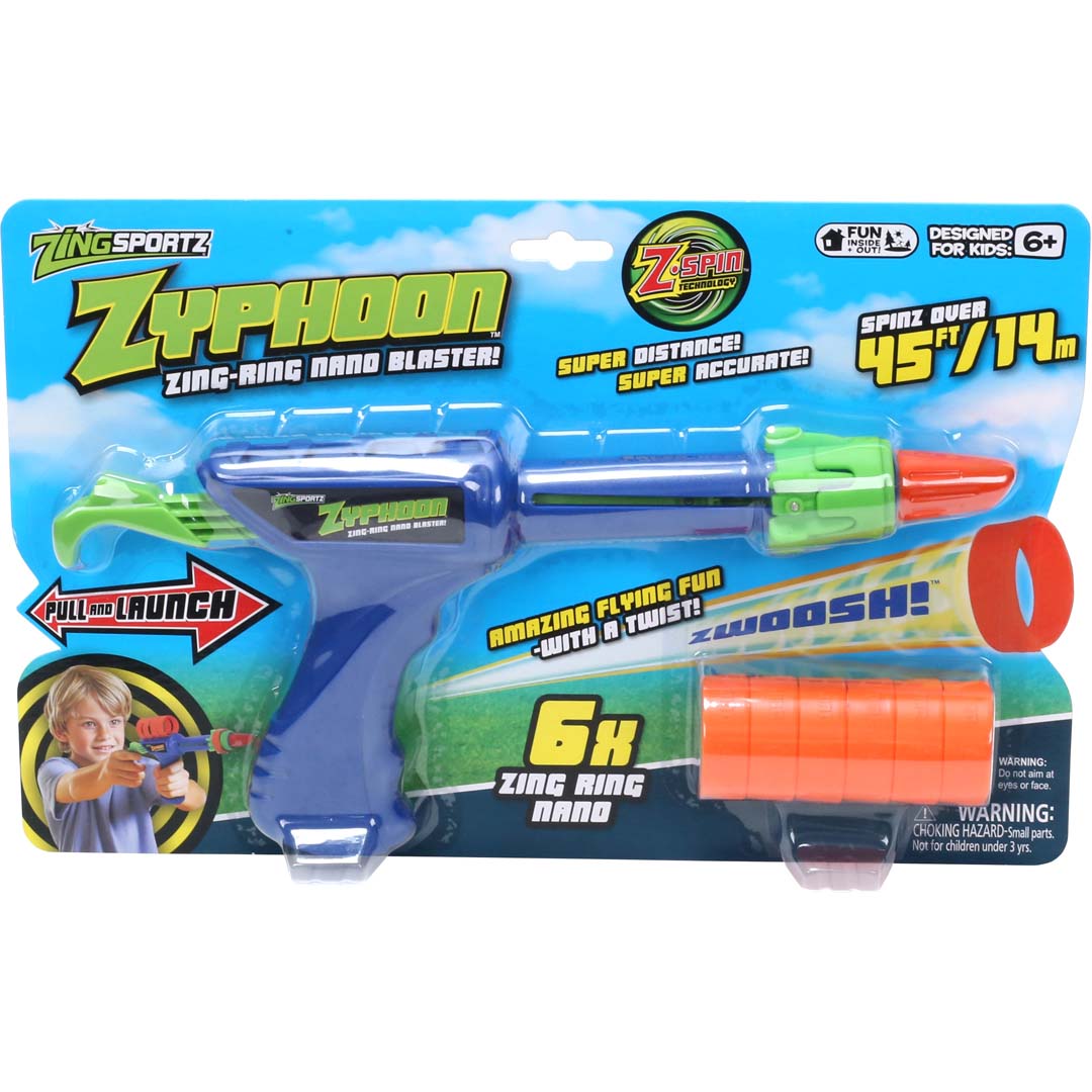 Contents: 1 x Zyphoon ring launcher, 6 x Zing Ring Nanos.